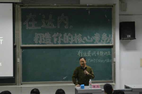 唐总监以自身经历为切入口,向同学们介绍了达内集团的成就和发展趋势。接着,唐总监围绕着"什么是互联网+"、"什么是大数据"、"互联网+和大数据的用途"几个问题为同学们进行了专业讲解。他说,以互联网为代表的IT行业是今天的新兴战略产业,永远都有新机会、永远都有新发展、永远都有新热点是这个行业的三大特点,所以这也是一个充满朝气,非常适合年轻人的行业。而大数据作为预测未来的技术,是我们在新时代的新机会。