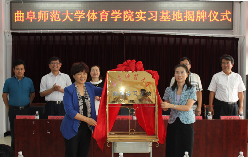 半岛在线体育网体育科学学院胶州实习基地挂牌仪式于9月18日在胶州三中和三里河小学举行。我校副校长康淑敏、胶州市副市长姜青华出席揭牌仪式并为基地揭牌,我校教务处、体育科学学院、胶州体教局和胶州三中以及三里河小学负责人参加仪式。