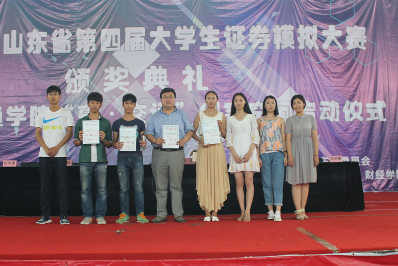 6月17日下午,“国泰安杯”山东省第四届大学生证券模拟大赛颁奖典礼在山东交通学院长清校区举行,我校经济学院2014级温国文获得一等奖(全省第二名),陈虹获得二等奖(全省第十一名),杜鑫、尹凯获得“优秀指导教师”称号。
