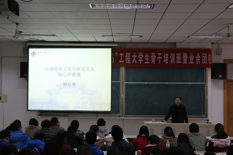 11月15日上午,我校青年马克思主义者培养工程大学生骨干培训班暨第二十四期业余团校第三讲——“中国传统文化与社会主义核心价值观”开讲,地理与旅游学院党总支书记胡长春受邀担任主讲人。