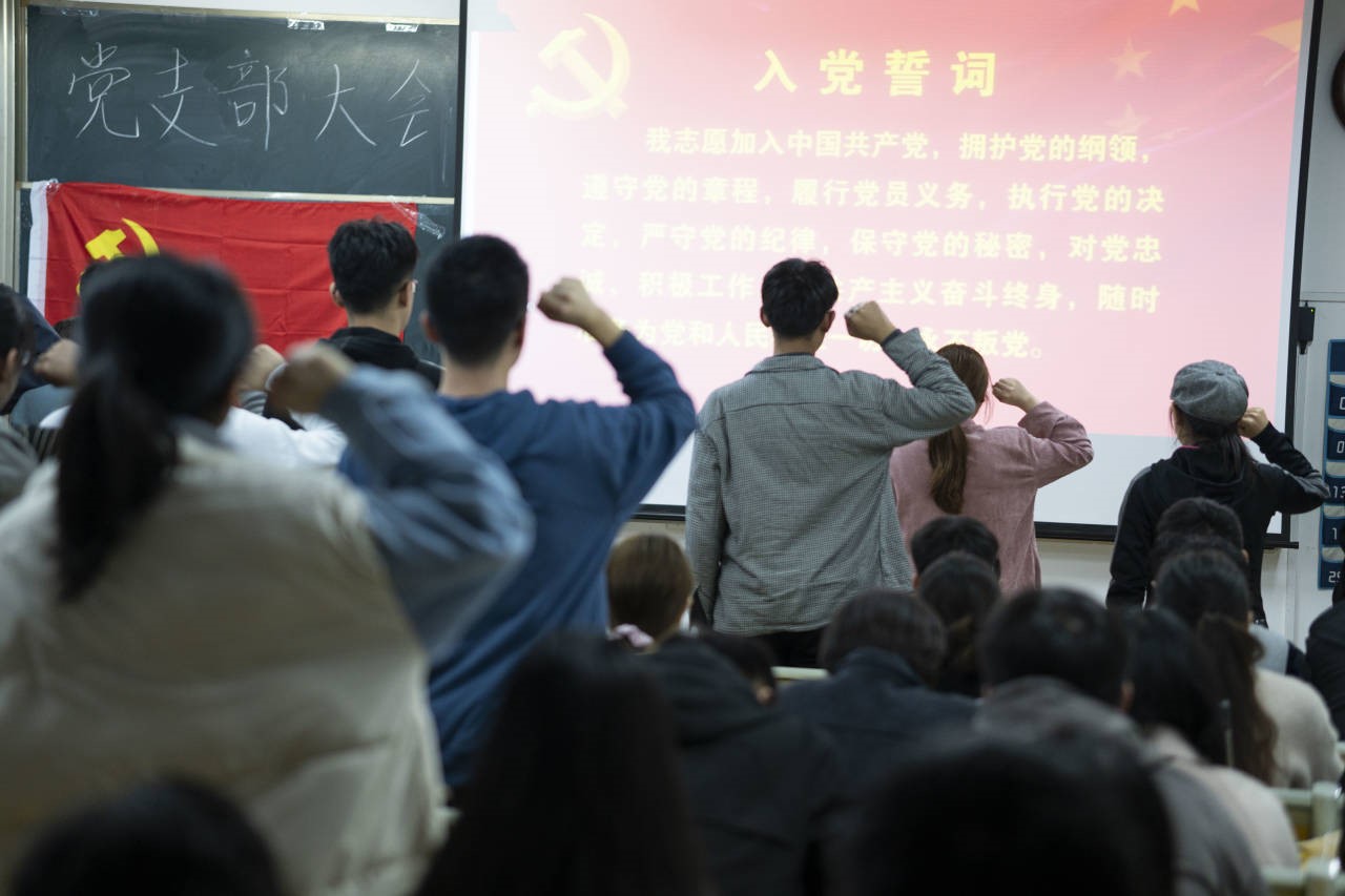 活动还按照党员发展的要求,进行预备党员入党宣誓仪式。17名预备党员和与会党员举起右拳,面向鲜红的党旗,在国际歌声中,进行入党宣誓和重温入党誓词活动。庄严的氛围深深感染了现场的共青团员们。