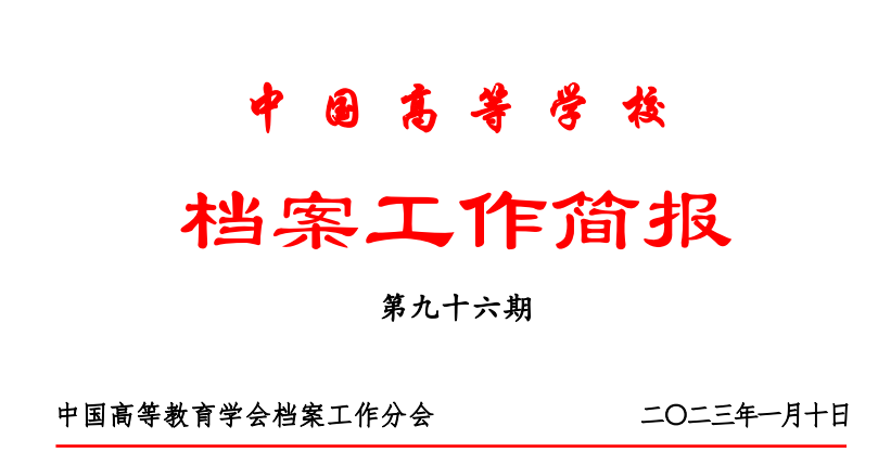 《中国高等学校档案工作简报》由中国高等教育学会档案工作分会编制,面向全国高校档案馆征集工作案例,对典型做法、先进经验进行宣传推广,促进各馆之间的业务交流和借鉴学习,助推档案事业高质量发展。