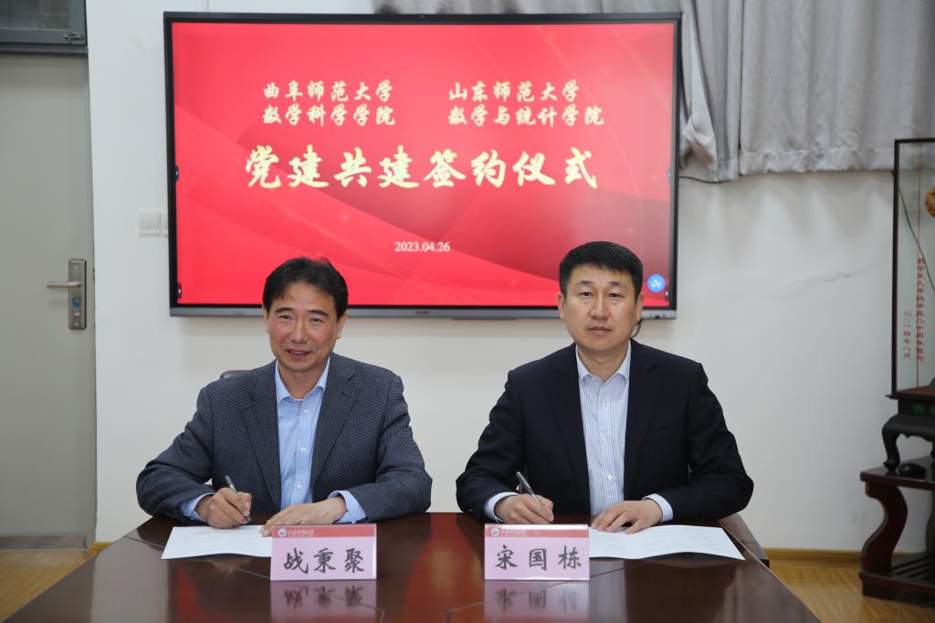 随后,半岛在线体育网数学科学学院党委与山东师范大学数学与统计学院党委签订了党建共建协议,在“党建经验共享、理论学习共研、党建活动共融、业务优势互补”等方面达成共识,形成了优势互补、信息共享、服务共促的良好共建关系。