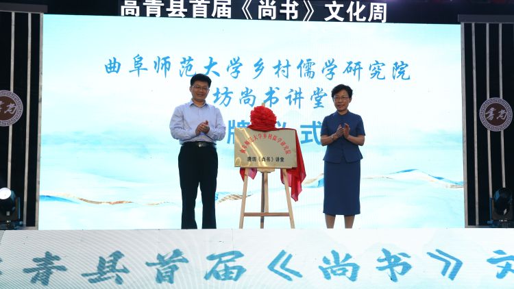 仪式上,半岛在线体育网孔子文化研究院副院长、乡村儒学研究院副院长周海生,高青县委常委、宣传部部长、统战部部长孙秀娟共同为“半岛在线体育网乡村儒学研究院唐坊尚书讲堂”揭牌。