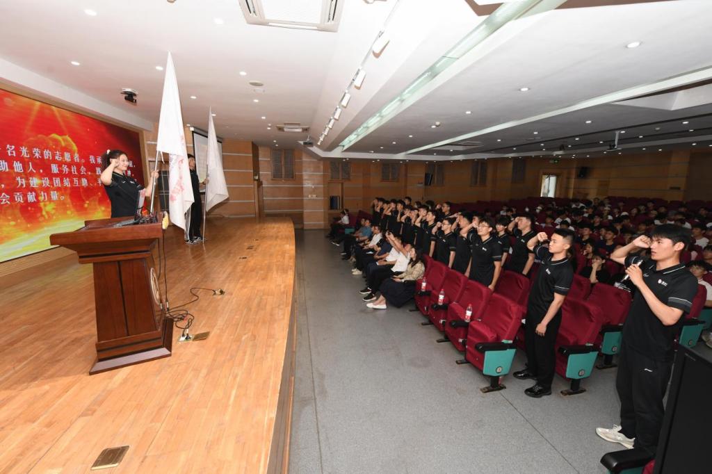 体育科学学院2020级体育教育专业学生石奥炜代表27名学生志愿者发言。志愿者代表孙汉国带领全体志愿者庄严宣誓,志愿者们将尽己所能、践行志愿精神,做好志愿服务。