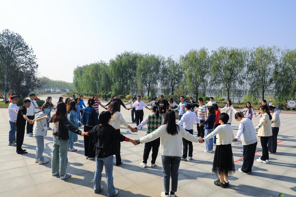 曲阜师大工会讯 龙湖公园秋阳暖,寻芳亭前初相见。经过数日悉心策划筹备的“缘聚曲园之初相见”联谊活动于10月15日上午在兖州龙湖湿地公园拉开帷幕,曲阜师大和济宁学院单身教职工共60余人参加了活动。外国语学院工会主席高歌受邀主持本次活动。