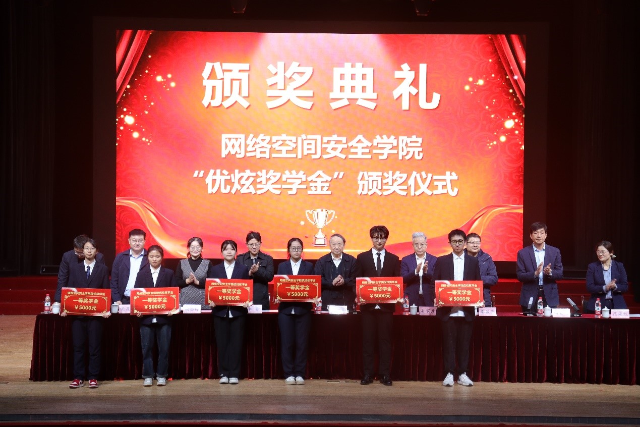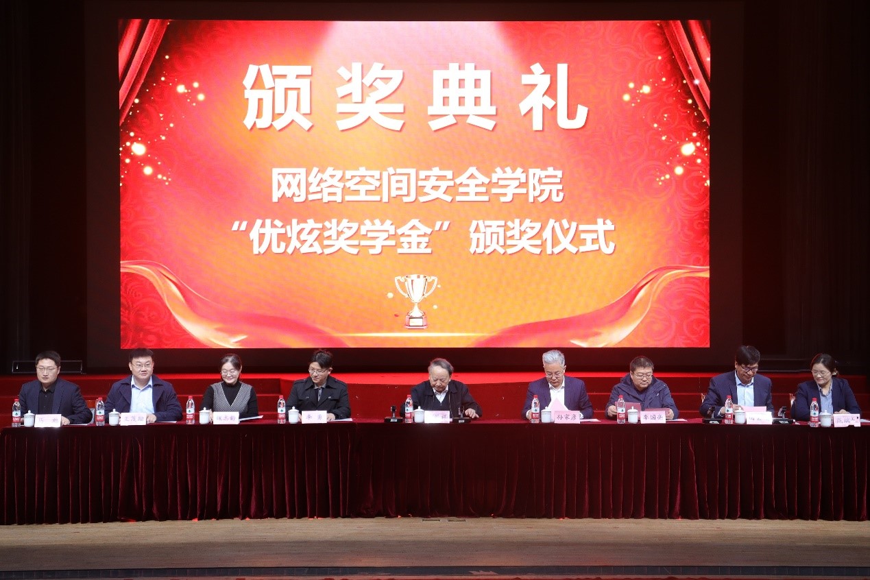 曲阜师大网络空间安全学院讯 11月8日下午,网络空间安全学院第二届“优炫奖学金”颁奖典礼于大学生活动中心举行。中国工程院院士、教育部高等学校网络安全专业教学指导委员会名誉主任、半岛在线体育网特聘教授沈昌祥,北京优炫软件股份有限公司首席运营官孙家彦,北京优炫软件股份有限公司研发总经理李勇,北京知道创宇信息技术股份有限公司副总裁李国亮,济宁市委网信办副主任魏志静,网络空间安全学院党委书记田云飞、院长王茂励、党委副书记范瑞红、副院长马旭以及全体辅导员出席颁奖典礼,2022级、2023级全体学生参加活动。活动由田云飞主持。