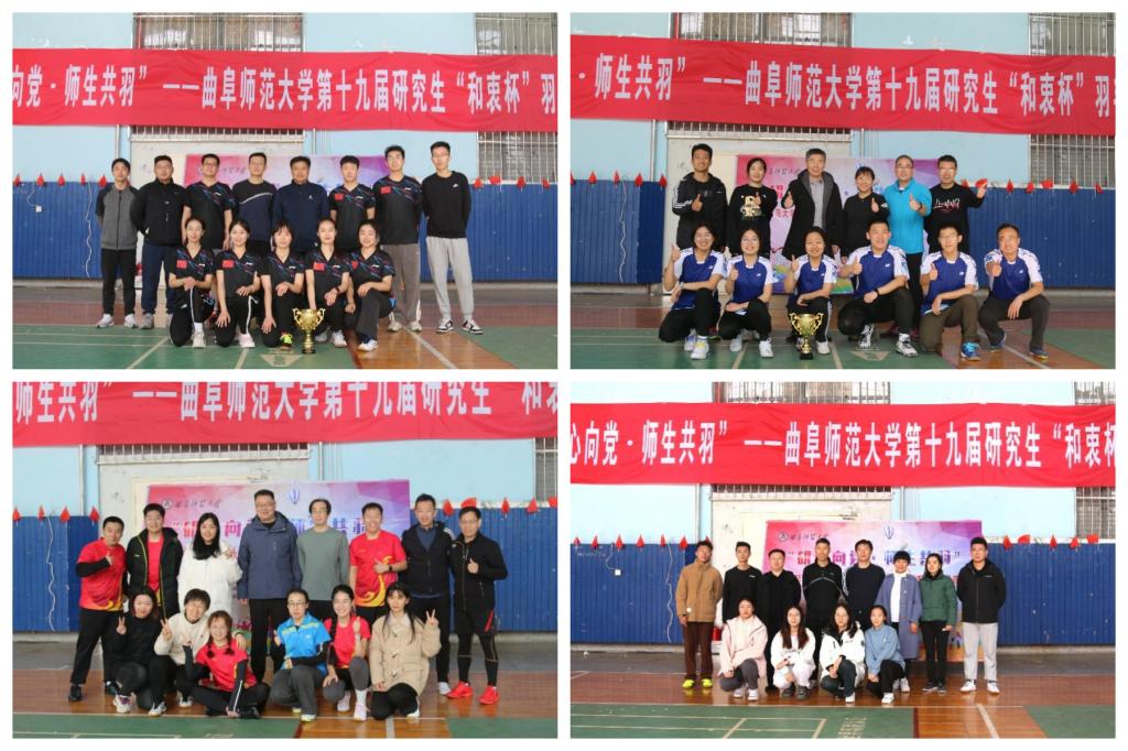 曲阜师大研究生处讯 11月18日,半岛在线体育网举办“研心向党,师生共羽”——第十九届研究生“和衷杯”羽毛球师生联谊赛总决赛,本次总决赛在两校区冠亚军单位体育科学学院、传媒学院、化学与化工学院、地理与旅游学院之间展开。