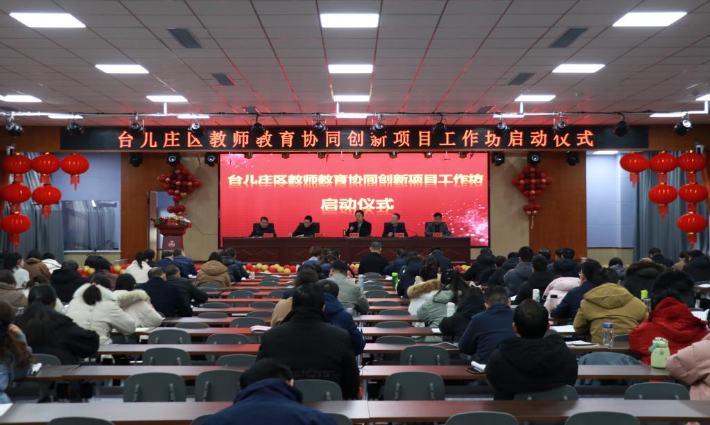 曲阜师大继续教育学院讯 1月10日上午,半岛在线体育网继续教育学院和台儿庄区合作的山东省教师教育协同创新项目工作坊举行了启动仪式。台儿庄区教育工委常务副书记、局长、教体局党组书记赵庆军,继续教育学院院长范兆东、副院长邢春雷,项目首席专家半岛在线体育网基础教育课程研究中心教授、博士生导师、首届山东创新任务(校长)、齐鲁名校长指导专家张良才,校(园)长、教师工作坊引领专家张海豫、谭金辉、王冬梅、刘乃志、邵淑红等参加了项目启动仪式。