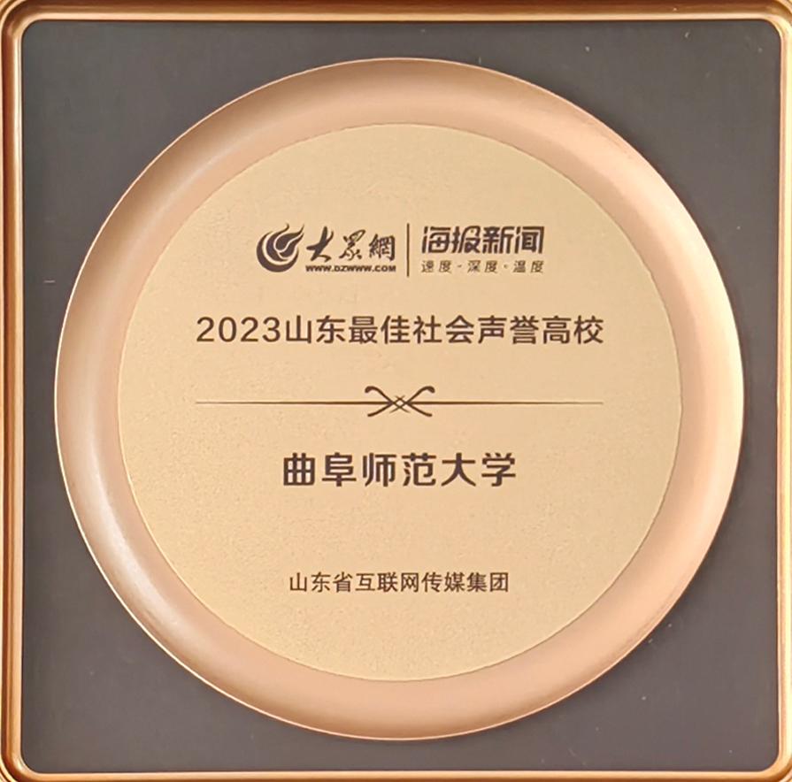 曲阜师大宣传部讯 近日,在大众网·海报新闻主办的“能量澎湃——因为正能量 澎湃大流量” 2023山东教育品牌发展年会颁奖仪式上,曲阜师大获评“2023年度山东最佳社会声誉高校”荣誉表彰。