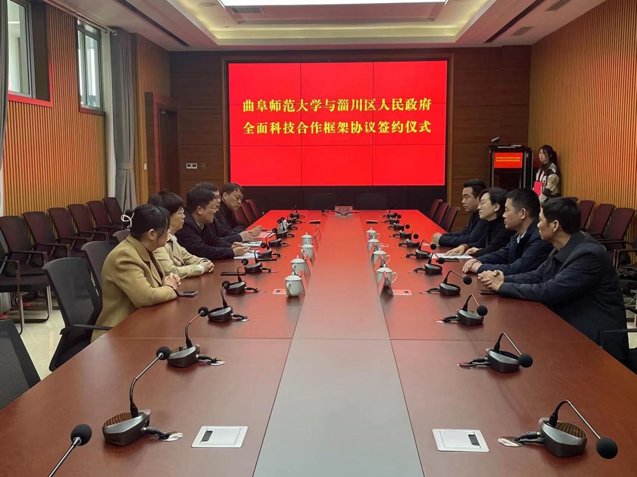 曲阜师大政治与公共管理学院讯 3月19日上午,政治与公共管理学院党委书记卢瑞霞、副书记张忠凯一行4人赴淄博淄川访企拓岗。淄川区淄博市淄川区委常委、副区长孙鹏伟,区人力资源与社会保障局党组书记、局长刘芳,区科技局党组书记桑林,区科技局局长韩敬艳等淄川区相关领导接待了卢瑞霞一行。双方深入交流,并签订了全面科技合作框架协议。