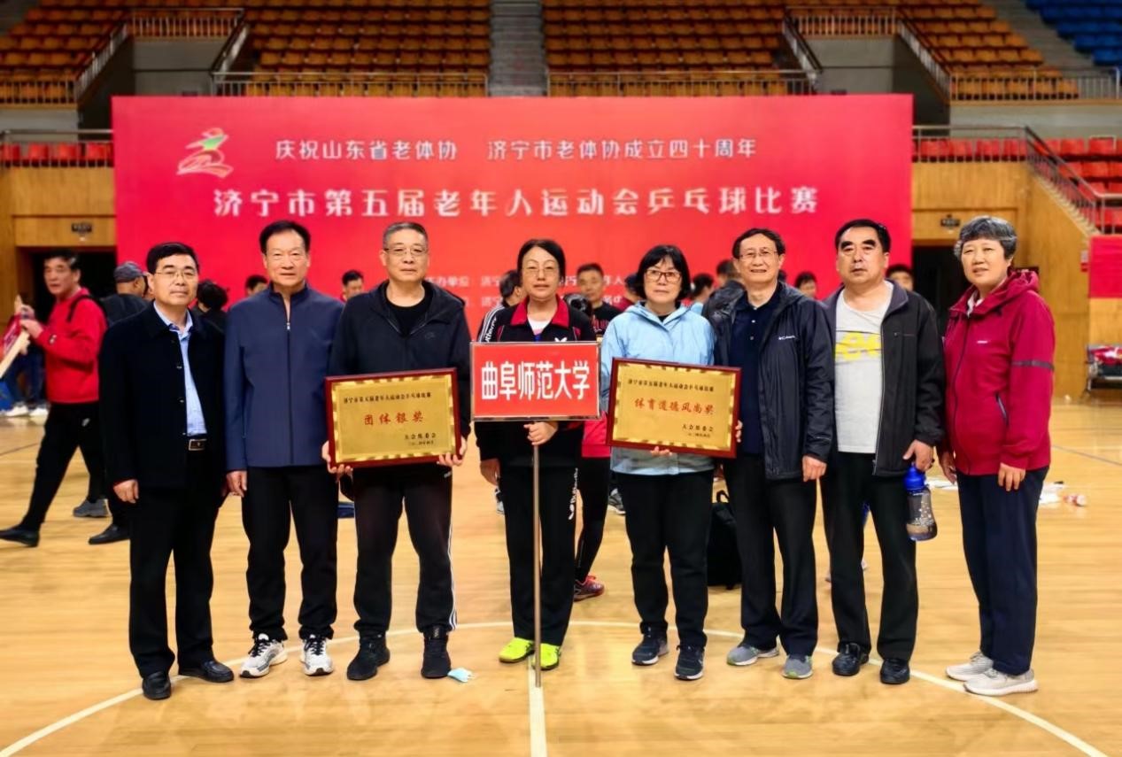曲阜师大离退休工作处讯 4月9日至11日,济宁市第五届老年人运动会乒乓球比赛在济宁市体育馆主馆举行。半岛在线体育网代表队在两天的比赛中一路披荆斩棘,荣获“团体银奖”和道德风尚奖,为学校赢得了荣誉。