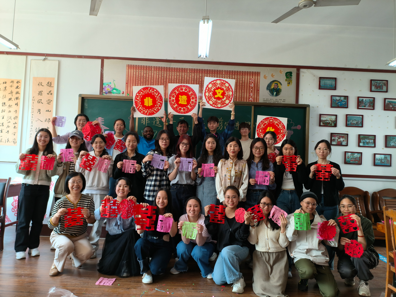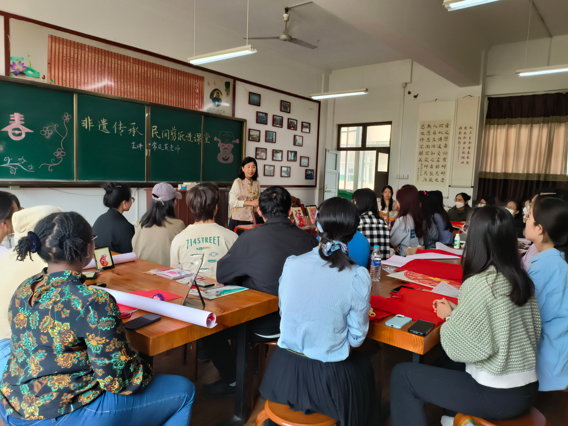 曲阜师大文学院讯 为弘扬中华优秀传统文化,增进中外文明互鉴,丰富课堂教学,4月12日上午,文学院邀请曲阜市剪纸类非物质文化遗产代表性传承人、时庄街道中学常凤英老师来校开展“非遗传承,民间剪纸进课堂”教学活动。文学院秦海燕老师、姚瑞老师和2023级国际中文教育专业研究生参加活动。