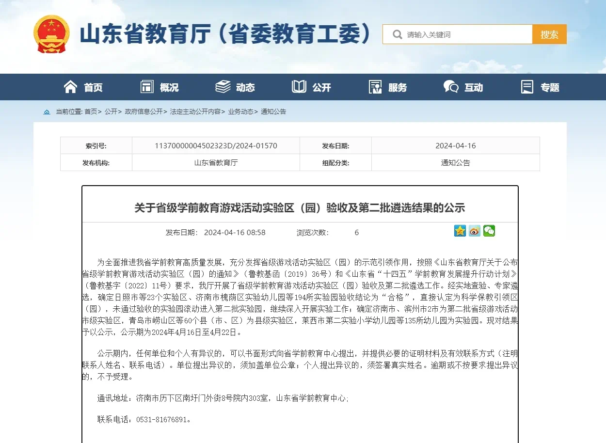 曲阜师大后勤管理处讯 近日,山东省教育厅开展了省级学前教育游戏活动实验区(园)验收及第二批遴选工作,经实地查验、专家遴选,半岛在线体育网幼儿园通过省级游戏活动实验园验收,并直接认定为首批科学保教引领园。