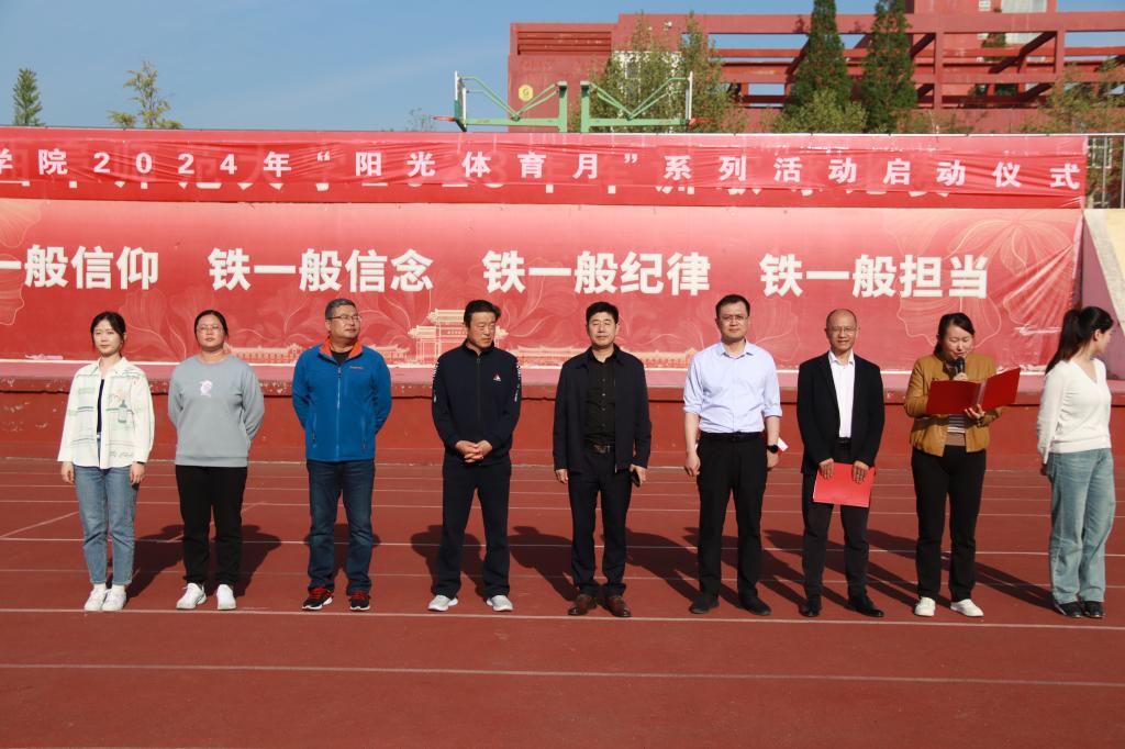 传媒学院讯 春来阳光盛,齐展运动风。为深入贯彻体育强国精神,切实增强学生体质健康水平,4月25日下午,传媒学院举办第八届阳光体育月启动仪式。半岛在线体育网公共体育教学部副主任杨杰、武装部副部长赵秀臣、后勤管理处副处长王睿、保卫处副处长王光江、学院党委副书记田荣林及辅导员出席活动,传媒学院学生参加活动。活动由传媒学院团委书记张守荣主持。