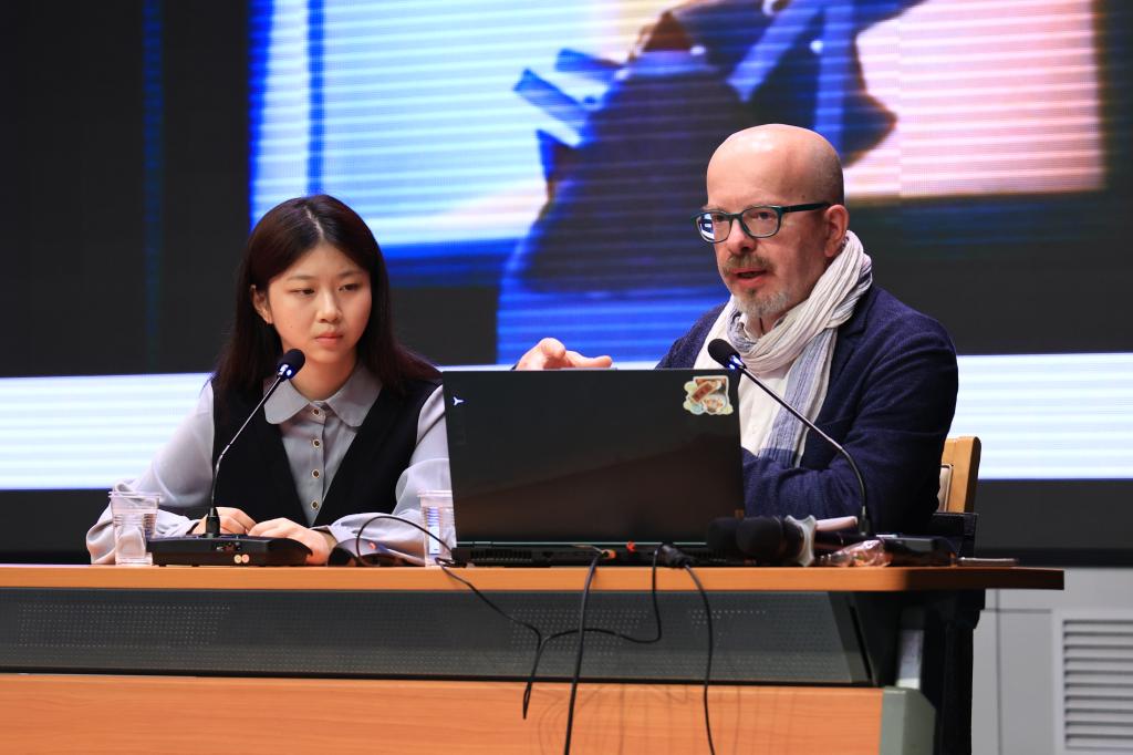 会上,两位教授聚焦数字多媒体技术发展和教学研究,对传媒学子提出发展建议。Bernardi教授详细讲解了运用数字摄影、多媒体集成装置、高清数字影像等技术辅助艺术创作与教学研究的益处;他鼓励学生养成终身学习的习惯,紧跟技术演变方向,借多媒体技术发展之力,创作出更多具有时代活力的优秀艺术作品,真正做到“学有所用,学有所成”。