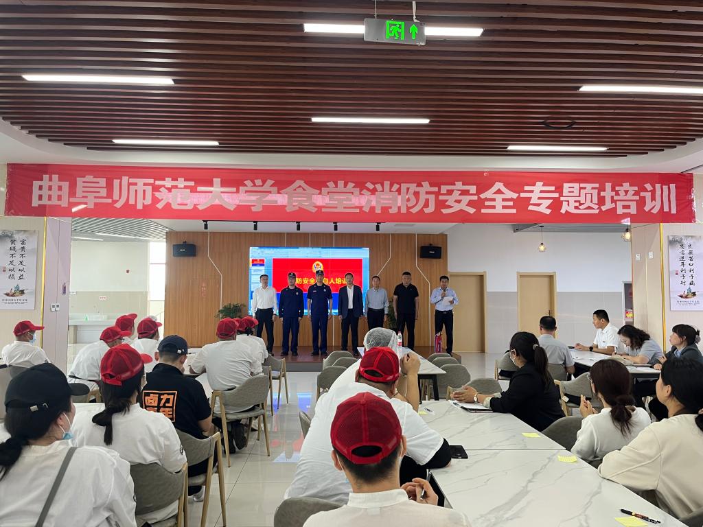 曲阜师大后勤管理处讯 为进一步提升食堂管理与从业人员消防安全意识和应急处理能力,5月7日下午,学校后勤管理处联合保卫处组织开展食堂消防安全专题培训活动,活动邀请了曲阜市消防救援大队王磊中队长一行三人进行现场教学指导,通过消防技能培训、知识考核和模拟现场实操等三个环节对生活服务中心、餐厅经理及从业人员200余人进行了培训。活动由后勤管理处副处长祁世友主持。