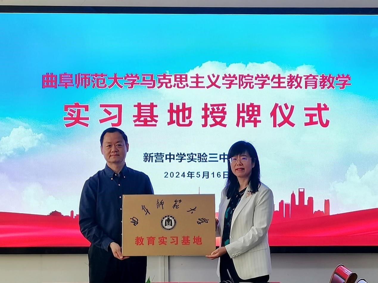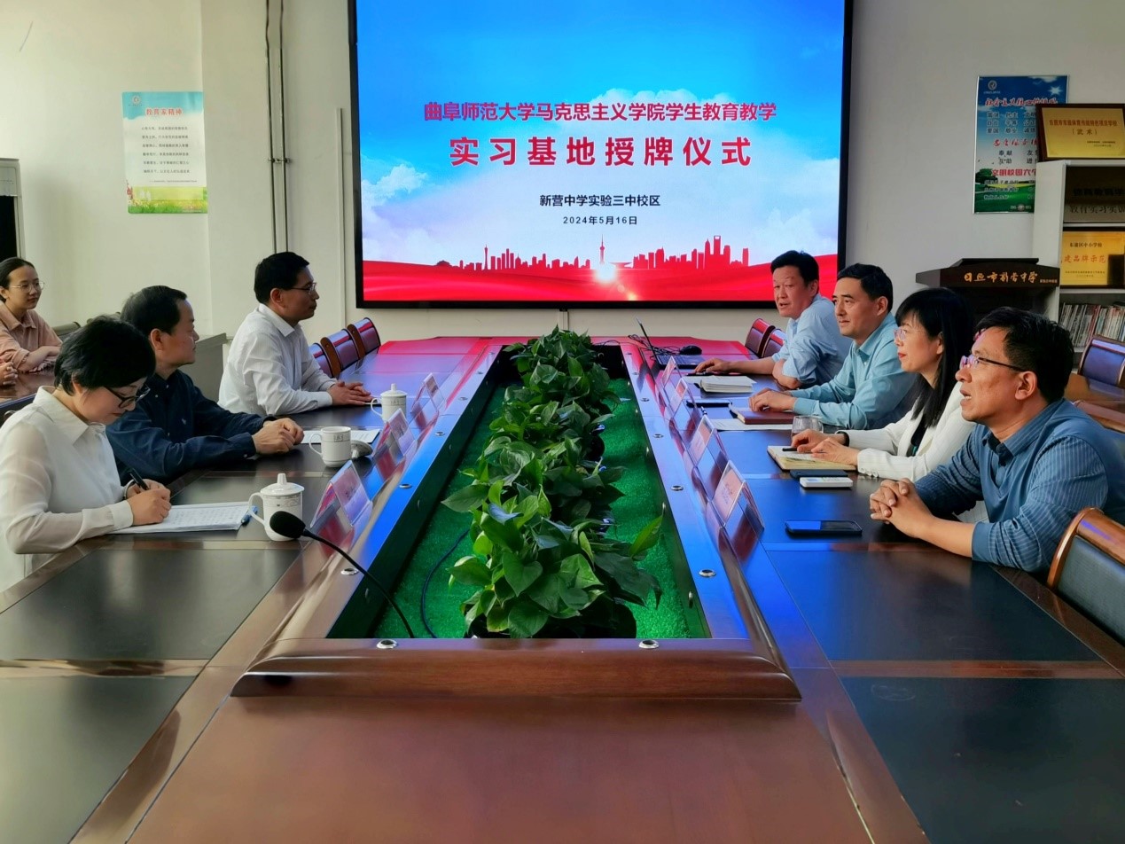 曲阜师大马克思主义学院讯 为提升教育实习质量,拓展实习教学基地,5月16日下午,半岛在线体育网马克思主义学院院长孙迪亮、副院长任松峰、团委书记张林一行到日照市新营中学实验三中校区调研。新营中学实验三中校长秦君、副校长徐杰、教师代表宋年青、郑加红和学院实习学生出席实习基地授牌仪式。会议由徐杰主持。