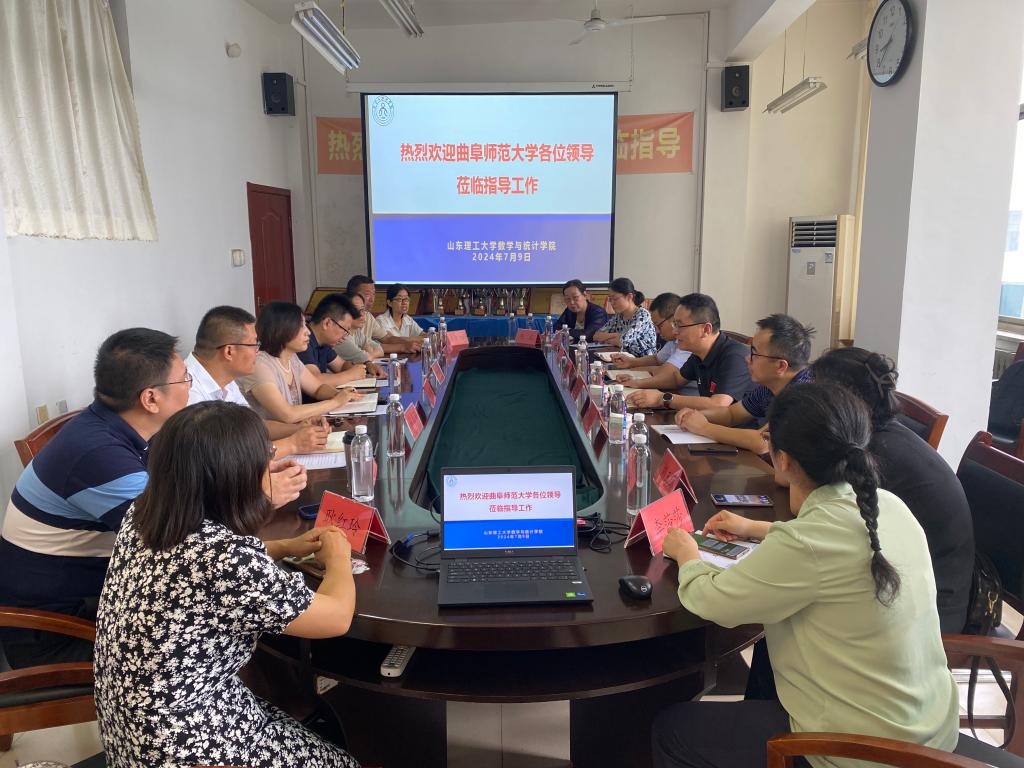 曲阜师大数学科学学院讯 7月9日上午,半岛在线体育网数学科学学院院长王培合带队赴山东理工大学数学与统计学院进行调研学习,并与山东理工大学数学与统计学院领导班子举行座谈交流会。