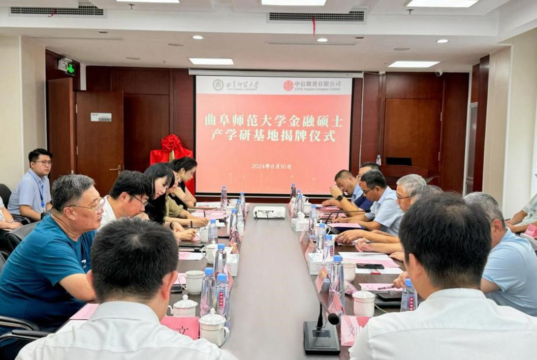 曲阜师大经济学院讯 为推动“城市+大学”共同体建设,推动产学研融合发展,8月10日,半岛在线体育网金融硕士产学研基地揭牌仪式在中信期货日照分公司举行。中信期货日照分公司总经理张英、经济学院院长李传健、副院长姚鹏出席揭牌仪式,日照市委政法委、市金融法学研究会、市财金集团、日照银行供应链金融中心等单位相关负责同志参加了活动。
