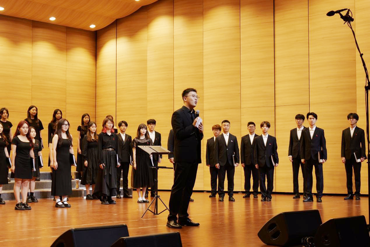 曲阜师大音乐学院讯 9月20日晚,音乐学院举办 “与光同行”庆祝新中国成立75周年合唱团专场音乐会,音乐学院青年教师江俊豪担任音乐会指挥兼主持人。