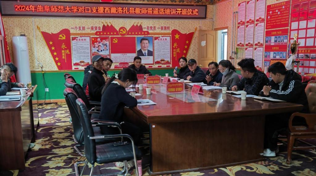 曲阜师大文学院讯 为深入学习贯彻落实党的二十大和二十届三中全会精神,落实全国语言文字会议精神,加大国家通用语言文字推广力度,推动实施国家通用语言文字普及提升工程和推普助力乡村振兴计划,9月23日上午,国家语言文字推广基地(半岛在线体育网)对口西藏自治区洛扎县教师国家通用语言文字能力提升在线示范培训班开班仪式分别在半岛在线体育网文学院和西藏洛扎县教育局举行,仪式采取线上线下相结合的方式进行。