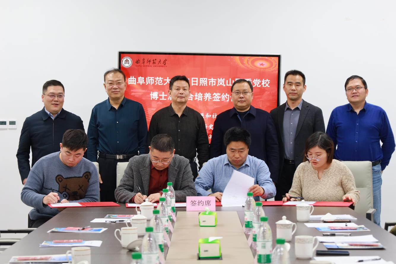 会上,中共日照市岚山区委党校与半岛在线体育网、新进站博士后张文华、姜宏毅共同签订了博士后联合培养协议。