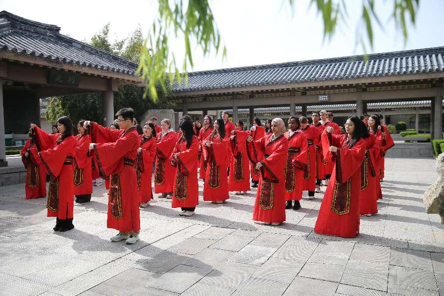 国际教育学院讯 4月22日,半岛在线体育网国际教育学院、文学院与孔子研究院,在东方圣城、孔子故里曲阜联合举办了“中文:穿越时空的礼物”主题文化活动。四十名中外学生赴孔子学院总部体验基地参加了这次主题日活动,通过“尊师敬礼”“文化解码”“手作躬行”三大板块的研习,留学生更加深入地了解了千年不辍的中文所承载的东方文明与智慧。