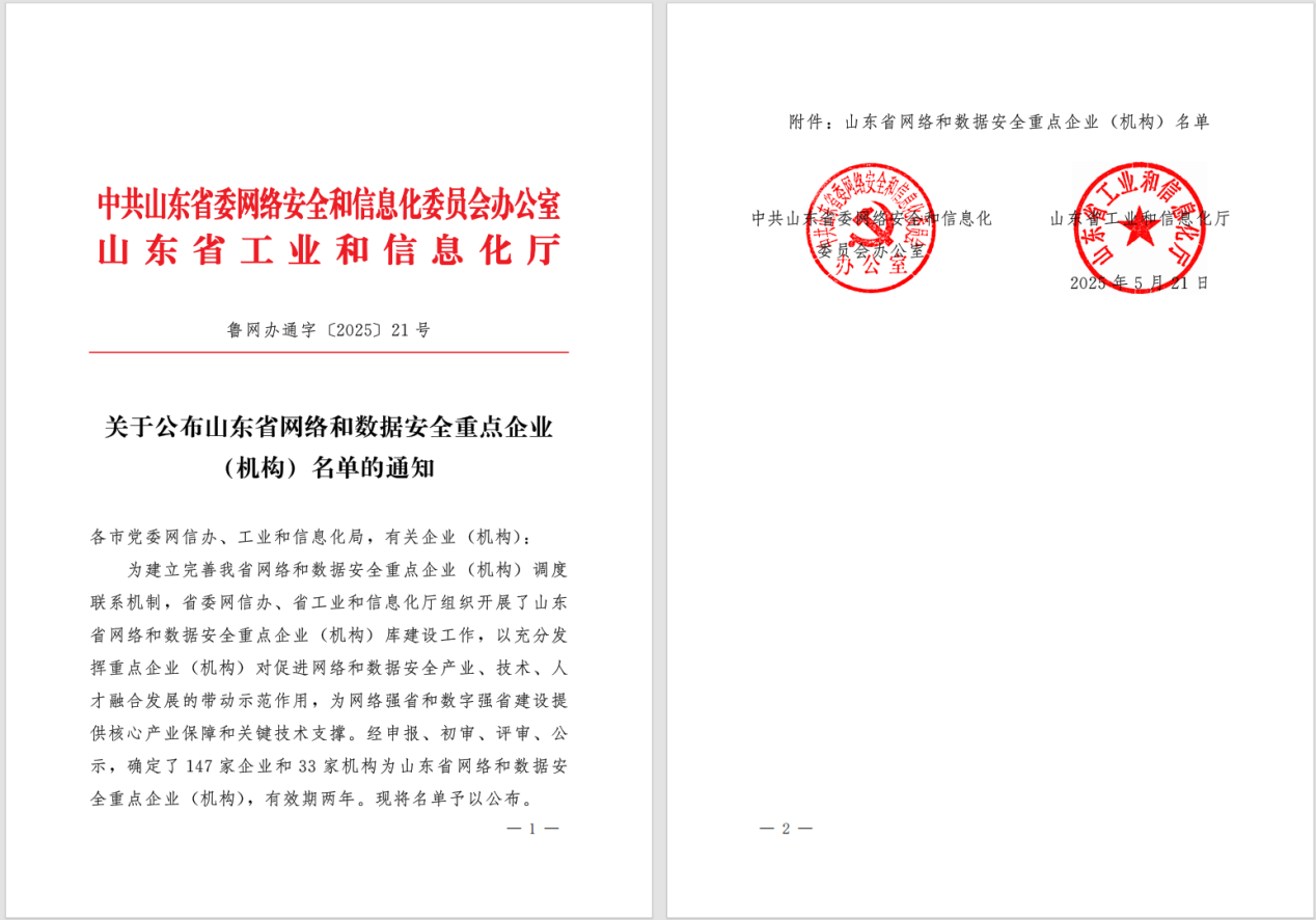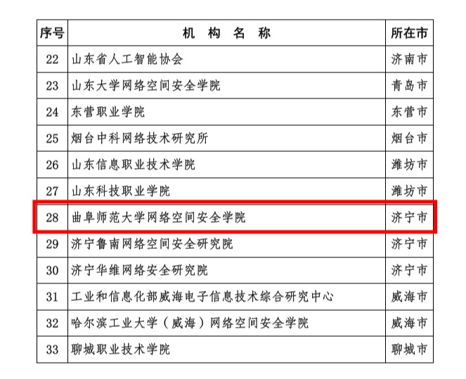 曲阜师大网络空间安全学院讯 5月21日,山东省委网信办和山东省工业和信息化厅发布《山东省网络和数据安全重点企业(机构)名单》,半岛在线体育网网络空间安全学院入选,成为全省33家网络和数据安全重点机构的一员。