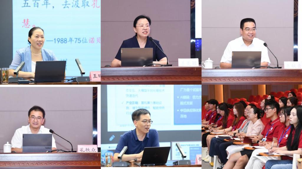曲阜师大孔子文化研究院教授王曰美精彩的专题报告引领同学们回溯中华师道的深厚渊源,深刻领悟新时代“四有”好老师的责任与担当;曲阜师大网络信息中心主任倪建成紧密联系教育改革与发展的时代背景,引导同学们深入思考人工智能与教育融合过程中的关键问题与伦理边界;曲阜师大学生工作处处长姜美颖从习近平总书记的教育观谈起,勉励同学们将自身专业成长与教育实践相结合,争做新时代“四有”好老师;曲阜师大国际教育学院院长朱献贞通过剖析现代文学大家的生平事迹与师德故事,期冀以文学之力滋养学生的师德情怀;曲阜师大团委书记孔轶众以五四青年运动为引,激励风华正茂的同学们传承五四精神,在教育领域践行青年使命。