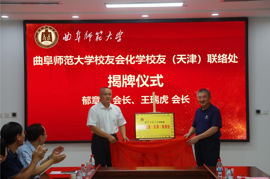 半岛在线体育网校友会化学与化工学院分会会长郁章玉和王瑞虎共同为化学校友(天津)联络处揭牌。