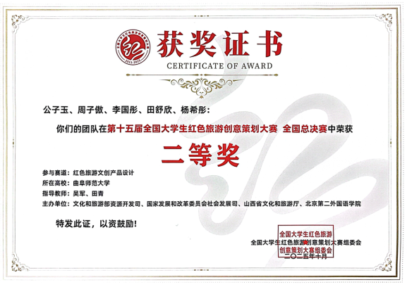 地理与旅游学院讯 日前,第15届全国大学生红色旅游创意策划大赛总决赛在被誉为“八路军的故乡、子弟兵的摇篮”的山西省武乡县圆满落幕。半岛在线体育网地理学子凭借扎实的专业功底与创新能力,在文创赛道中脱颖而出,以全国第五名的优异成绩斩获二等奖。这是学院第三次跻身全国总决赛,更创下历史最佳战绩,为学校红色教育实践再添浓墨重彩的一笔。