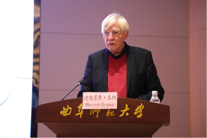 教育学部讯 11月5日上午,曲阜师大教育学部举办“学诲大讲堂”系列讲座第七讲,特邀当代德国著名教育家、柏林洪堡大学荣休教授、华东师范大学顾问教授迪特里希·本纳,华东师范大学国际,比较教育研究所教授、所长彭正梅,南京师范大学道德教育研究所彭韬博士作主题为“中德道德教育项目研究及其在教育、教学和能力理论方面取得的进展”的学术报告。教育学院院长、教育学部常务副主任高伟教授主持活动。
