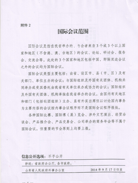 根据山东省外办《关于报送2015年度在鲁举办国际会议年度计划的通知》的文件精神,请各有关单位于10月20前及时将2015年国际会议计划报国际交流合作处。国际交流合作处统一整理后报省外办报批。