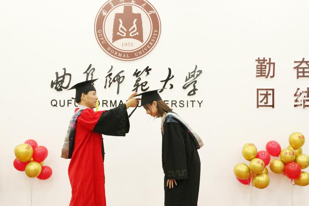 毕业生代表金龙梅,讲述了自己四年前稚气未脱来到曲阜师大求学,从当时的懵懂迷惑到现在的胸有成竹,一步步在老师的教诲和关心下成长的故事,表达了对校园的眷恋、对师长的感激、对母校的祝愿。
