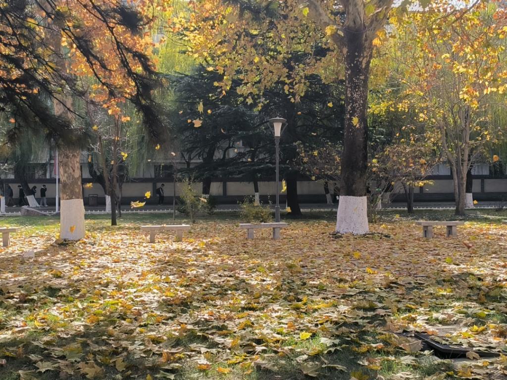 学校的这些树木连片茂密,各种建筑掩映其中,远看就像一大片森林。春天,我们这些从小在学校长大的教工子弟,捡杨树毛和榆钱做窝头吃。夏天,我们在各种树木下摸知了龟作为美食,经常收获满满。秋天,苹果黄杏葡萄成熟,金黄紫红,酸甜可口,令人垂涎欲滴,我们有时可能乘机顺几个吃。然后在秋风起兮时扫树叶、捡树枝,以烧锅做饭。冬天,北风呼号,银装素裹,我们不惧寒冷,在树下打雪仗,追逐嬉戏,充满童趣。