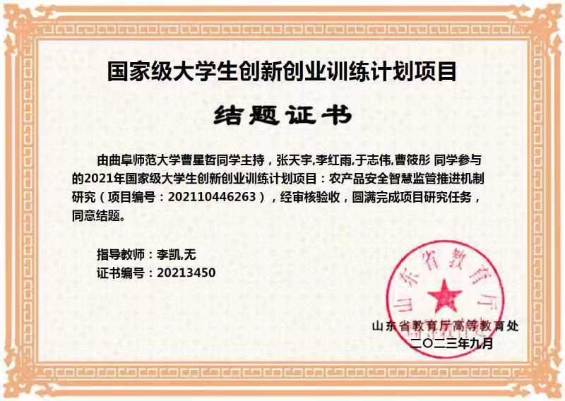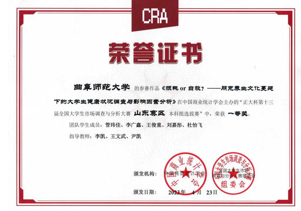 科研竞赛方面,我指导学生获得第十三届全国大学生沙盘模拟经营大赛全国总决赛一等奖、国家级全国大学生创新创业训练计划项目、第十三届全国大学生市场调查与分析大赛山东赛区本科组一等奖等省级以上竞赛获奖8项。社会实践方面,我获得2020、2021年半岛在线体育网“镜头中的三下乡”社会实践活动优秀指导老师,指导队伍分别获2021、2022年半岛在线体育网寒假社会实践校级一等奖。学术论文方面,我指导的本科论文获得2020年度半岛在线体育网优秀学士学位论文,2022年至2023年指导本科生完成学术论文5篇,已发表4篇。在我指导的2023、2024两届本科生中,有8人成功保研或考研,其中6人被录取到中国人民大学、北京工业大学等双一流高校,1人被东北财经大学录取,1人被圣安德鲁斯大学录取。