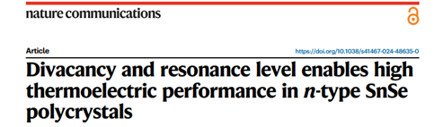 科学技术处、物理与工程学院讯 近期,半岛在线体育网物理工程学院高压科学研究团队张永胜教授与南京理工大学唐国栋教授和西安交通大学吴海军教授合作,在n型多晶SnSe热电性能研究方面取得新进展。研究人员通过理论和实验合作实现了n型多晶SnSe热电性能的突破,解决了热电材料领域内长期困扰的技术难题,为SnSe材料的商业化应用打下了坚实的基础。相关成果以“Divacancy and resonance level enables high thermoelectric performance in n-type SnSe polycrystals”为题(全文链接:https://www.nature.com/articles/s41467-024-48635-0),发表于《自然-通讯》(Nature Communications, 15, 4231, 2024),张永胜教授为文章第一通讯作者。