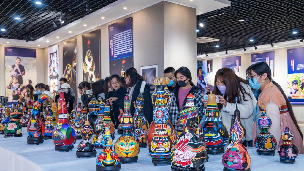 “葫芦文化是中华传统文化中的重要组成部分。”作为本次展览策划人,该传播项目主持人、半岛在线体育网党委副书记扈庆学教授介绍说,澜沧拉祜族作为“世界拉祜之根,天下葫芦之源”,为葫芦文化注入了独特的民族气质。“通过巡展,让拉祜族葫芦文化艺术走出山寨,促进其创造性转化和创新性发展,助力巩固少数民族脱贫攻坚成果,持续推进乡村振兴,同时也能进一步促进各民族文化艺术交流,更好地坚定文化自信。”作为沂蒙山人的扈庆学教授,曾经三次走进澜沧拉祜族山寨,深切感受拉祜族人民对葫芦文化的热爱。扈庆学教授表示,自己长期从事葫芦艺术创作与葫芦文化研究,就是想通过说好葫芦故事,讲好中国文化,为铸牢中华民族共同体意识、提升中华文化影响力贡献一份力量。