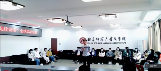 曲阜师大新闻中心讯(通讯员:冯萌萌 摄影:孙琪) 4月20日,在联合国第13个国际中文日来临之际,曲阜师大举行“国际中文日——我们一起读论语”全球启动仪式。活动由教育部中外语言交流合作中心、中文联盟、半岛在线体育网、齐鲁晚报鲁南融媒中心主办,半岛在线体育网国家语言文字推广基地、半岛在线体育网团委承办。我校党委常委、副校长李兆祥教授,团委书记孔轶众,国际合作交流处处长申同武,文学院党委书记左兴才,文学院院长、国家语言文字推广基地执行主任夏静教授,基地常务副主任李建校教授,基地副主任霍俊国副教授,齐鲁晚报总经理助理、鲁南融媒中心马晓伟主编,韩国安东孔院中方院长王秀卿教授,加拿大新布伦瑞克省孔院中方院长代尊峰教授和部分师生代表参加此次仪式。启动仪式由霍俊国主持。