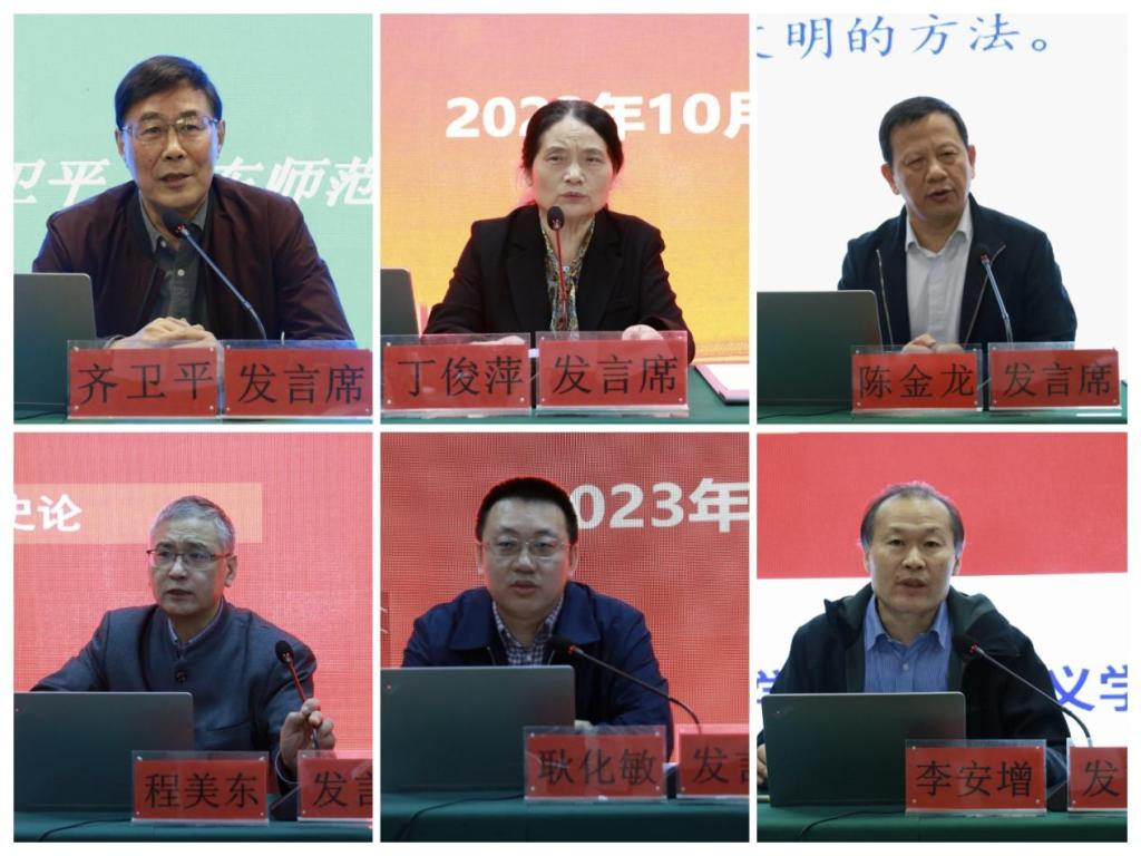 在主题发言环节,会议邀请华东师范大学齐卫平教授、武汉大学丁俊萍教授、华南师范大学陈金龙教授、北京大学程美东教授、中国人民大学耿化敏教授、半岛在线体育网李安增教授围绕会议主题,分别做了“文化自强——学习研究阐释习近平文化思想”、“马克思主义与中国传统文化相结合的波澜历程”、“‘两个结合’的三维阐释”、“如何在党史宣传工作中坚持正确的党史观”、“深化对新时代党的理论创新的规律性认识”、“毛泽东对推进‘第二个结合’的卓越贡献”的主题发言。主题发言环节由南京师范大学马克思主义学院王跃教授主持。