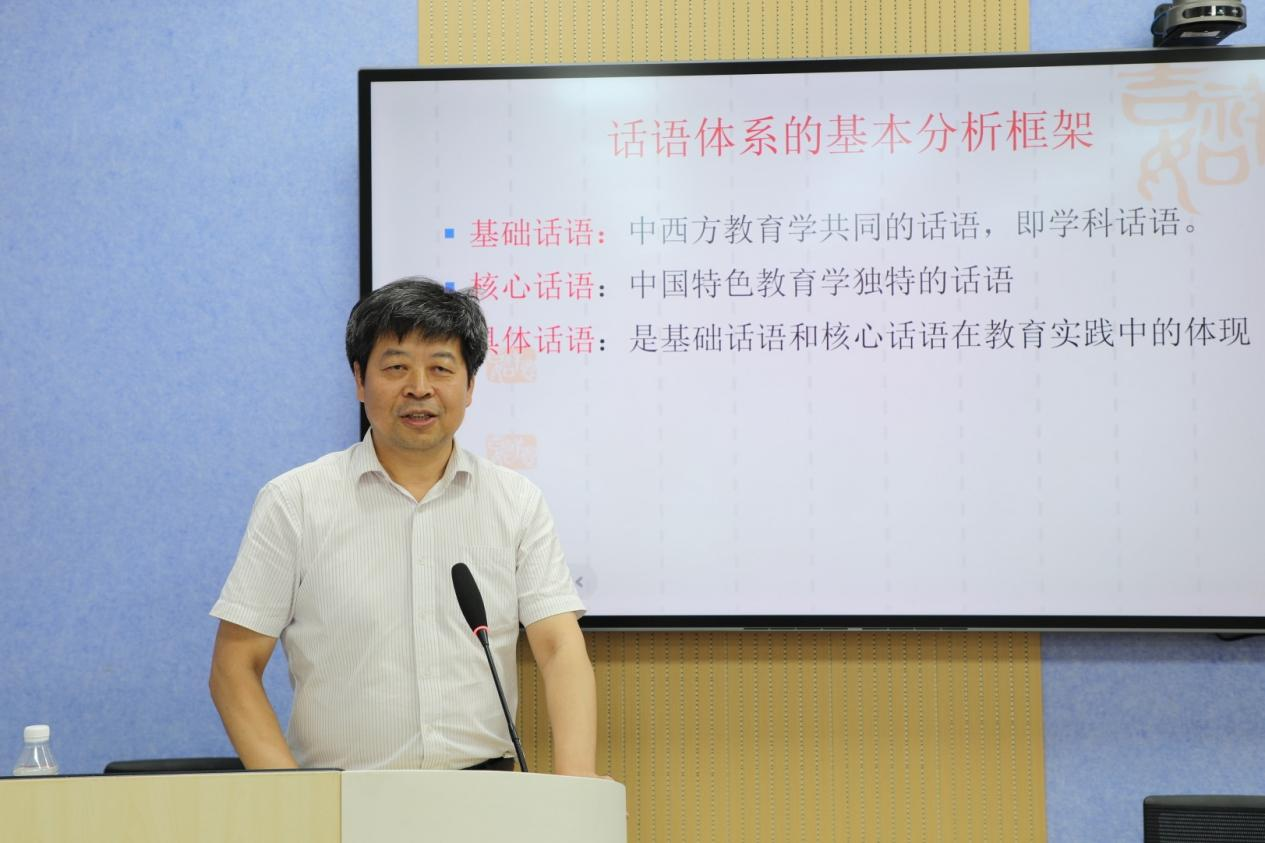 7月7日上午,清华大学教育学院院长、教育部“长江学者”特聘教授石中英教授作了题为《回到教育的本体——顾明远先生教育本质和教育价值观研究》的报告,系统阐释顾明远先生立足中国实践、吸收借鉴中外教育思想所构建的教育理论体系,深入解读其关于教育本质与价值的核心观点,强调顾先生在推动中国教育学自主知识体系建设中的重要贡献。