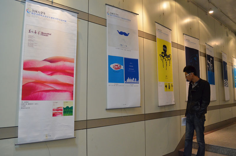全国大学生海洋文化创意设计大赛优秀作品巡回展山东站在我校美术馆开展