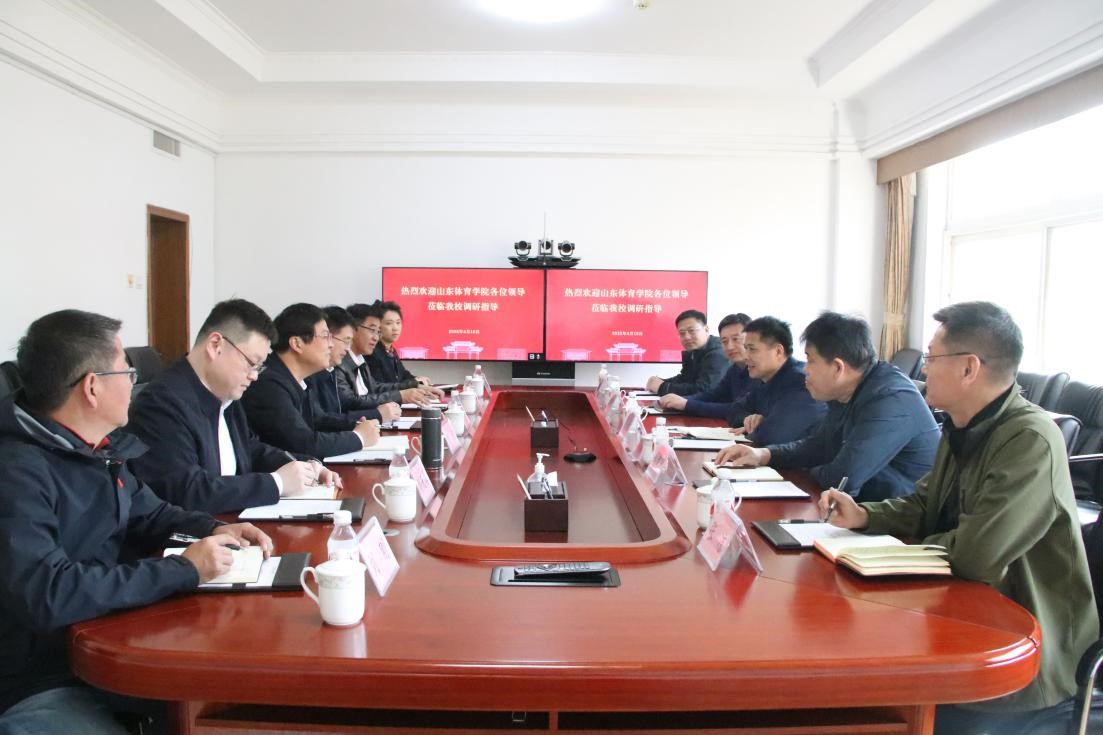 曲阜师大日照校区办公室讯 4月10日,山东体育学院党委委员、副院长、日照校区管委会主任刘敏一行来校访问交流,曲阜师大党委常委、副校长刘刚会见并座谈。座谈会上,刘刚对刘敏一行来访表示热烈欢迎,并...